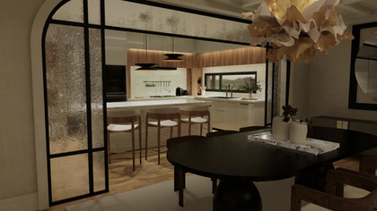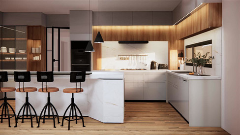 Recreamos texturas, acabados y escenarios lumínicos para anticipar cómo se percibirá cada espacio en la realidad.