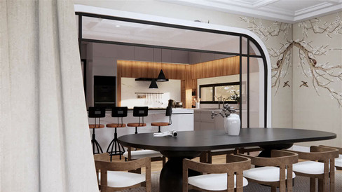 Los revestimientos mezclan la solidez atemporal del Dekton con la calidez de la madera y el acabado sofisticado de laqueados exclusivos, desarrollados en nuestra línea de diseño más fina. Una composición que convierte esta cocina en un ambiente relajado pero vanguardista, pensado para vivirlo todos los días con lujo discreto.